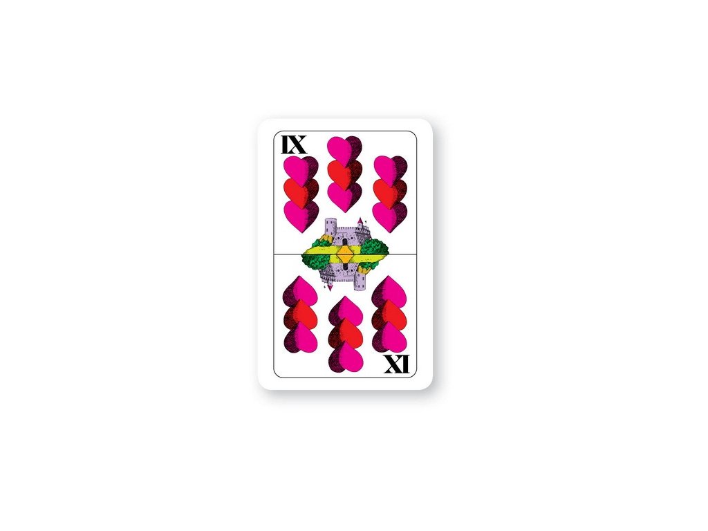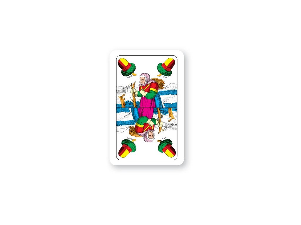 …herní sada zobrazuje na jednotlivých figurách legendu o Vilému Tellovi, obraz karet je s drobnými změnami stejný již 150 let. Obrazy jednotlivých es zobrazují roční období od jara do zimy. Hra zachovává oblíbený revers ve tvaru krajky.